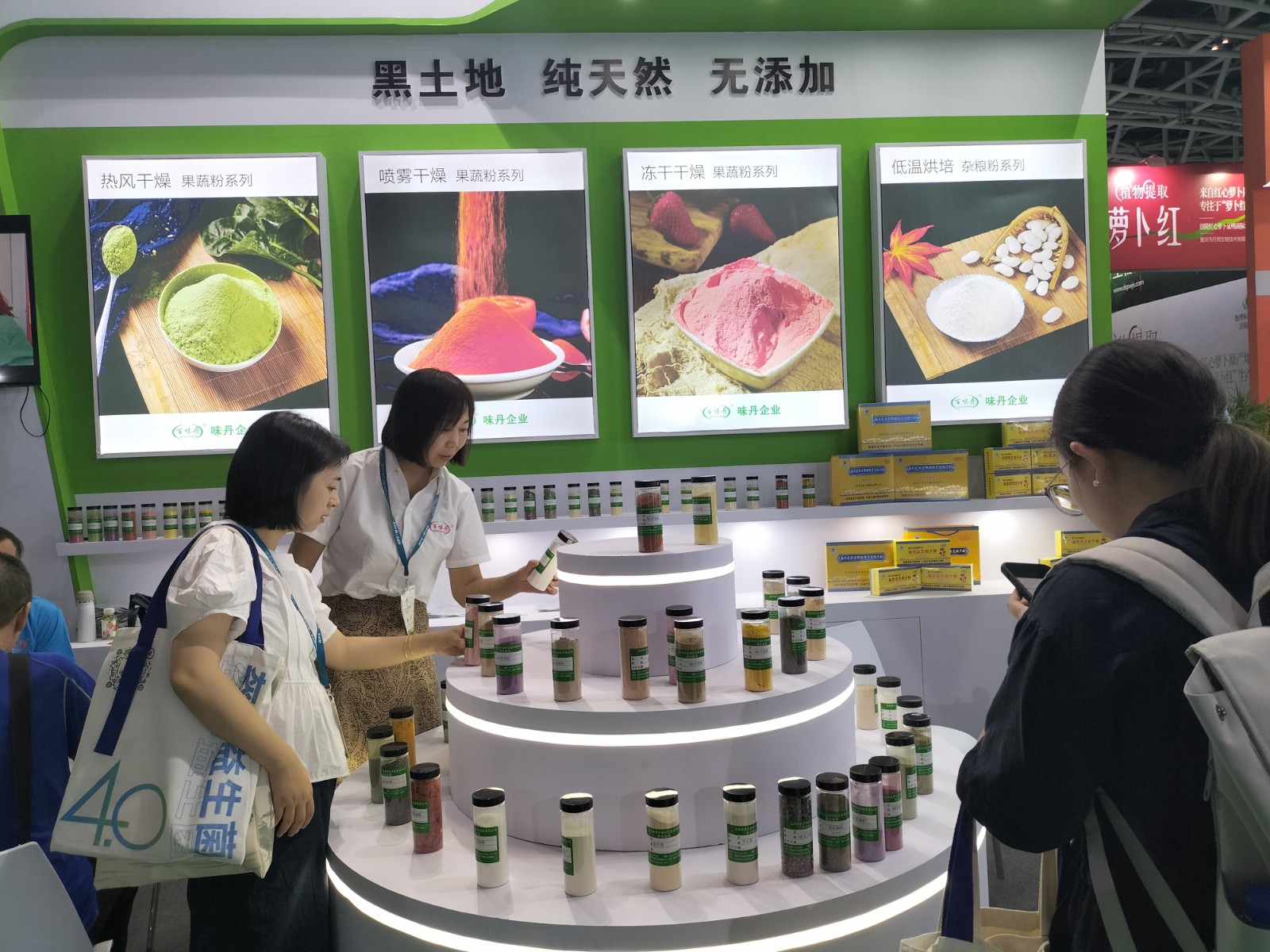 來自國內國際食品相關的精準買家,比如飼料加工行業、雜糧粥生產企業、運動飲料加工企業、保健食品代銷、思域推廣平臺,都來到沈陽味丹展位上,深入交流。對瓶瓶罐罐裝的五顏六色樣品,不同工藝的產品,產生濃厚興趣,日接待量達到上千人。其中,西蘭花粉、番茄粉、紫薯粉、芒果粉、樹莓粉,特別受大家青睞;因為參與此次展會,我們也精準地捕捉到行業趨勢的信息。未來,凍干果蔬粉,需求量增大,必然是發展趨勢。