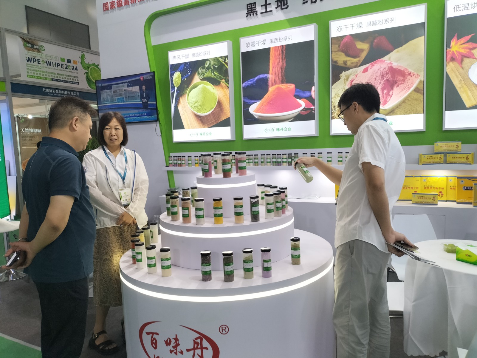 2024年“西部天然植提物、醫藥原料創新原料、功能營養保健品展”該展是國內聚焦天然提取物+大健康產業為核心的全產業鏈展覽會,2024年7月29-31日在西安盛大舉辦。沈陽味丹生物科技股份有限公司,以熱風干燥(AD)果蔬粉、噴霧干燥(SD)果蔬粉、凍干干燥(FD)果蔬粉、低溫烘培雜糧粉系列產品,代表公司主要產品進行展示。